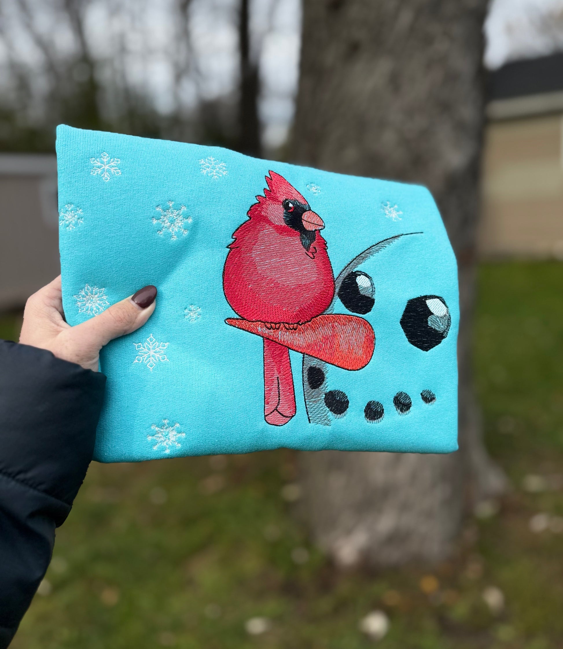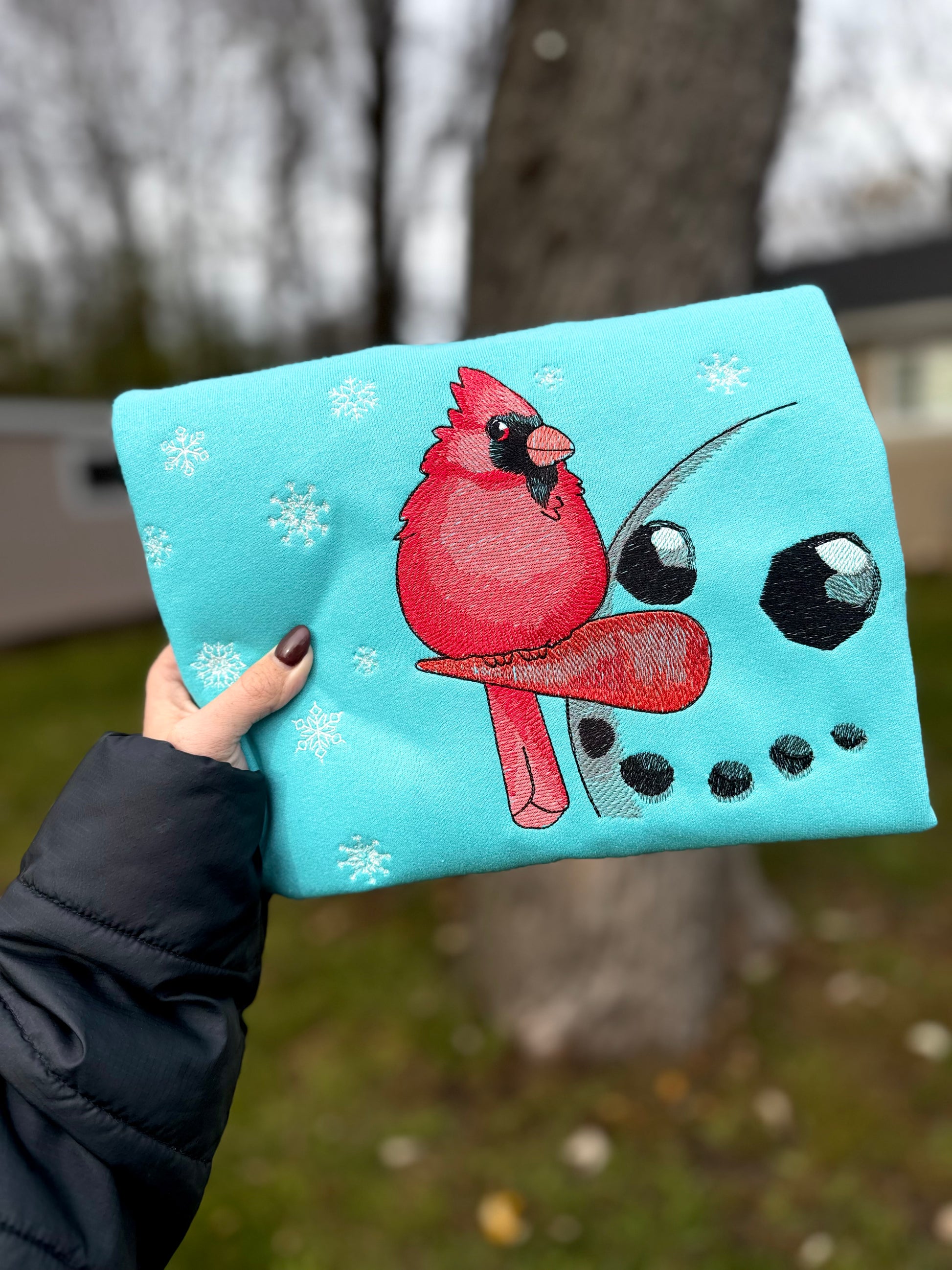 Embroidered cardinal crewneck