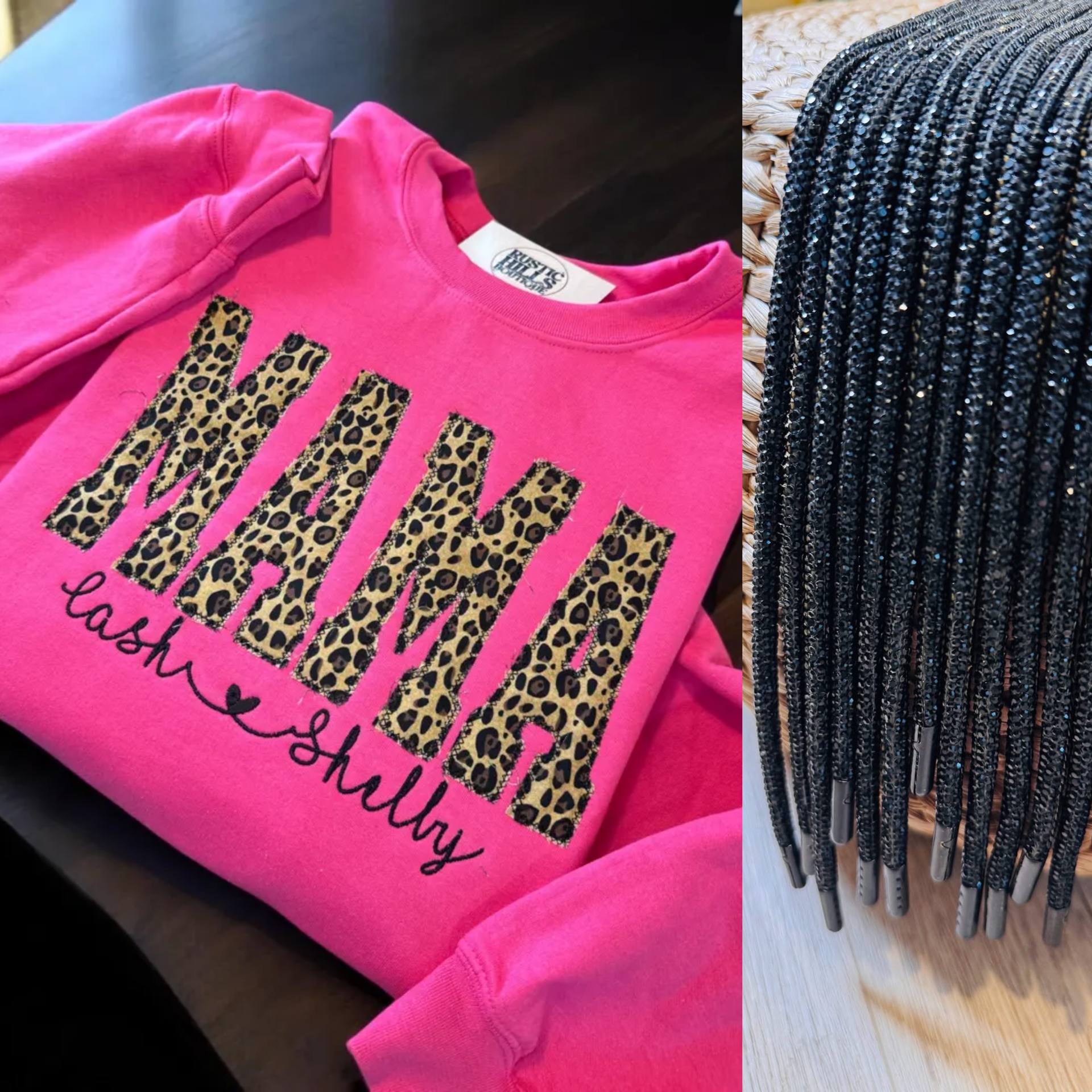 Embroidered MAMA hoodie w/rhinestone string